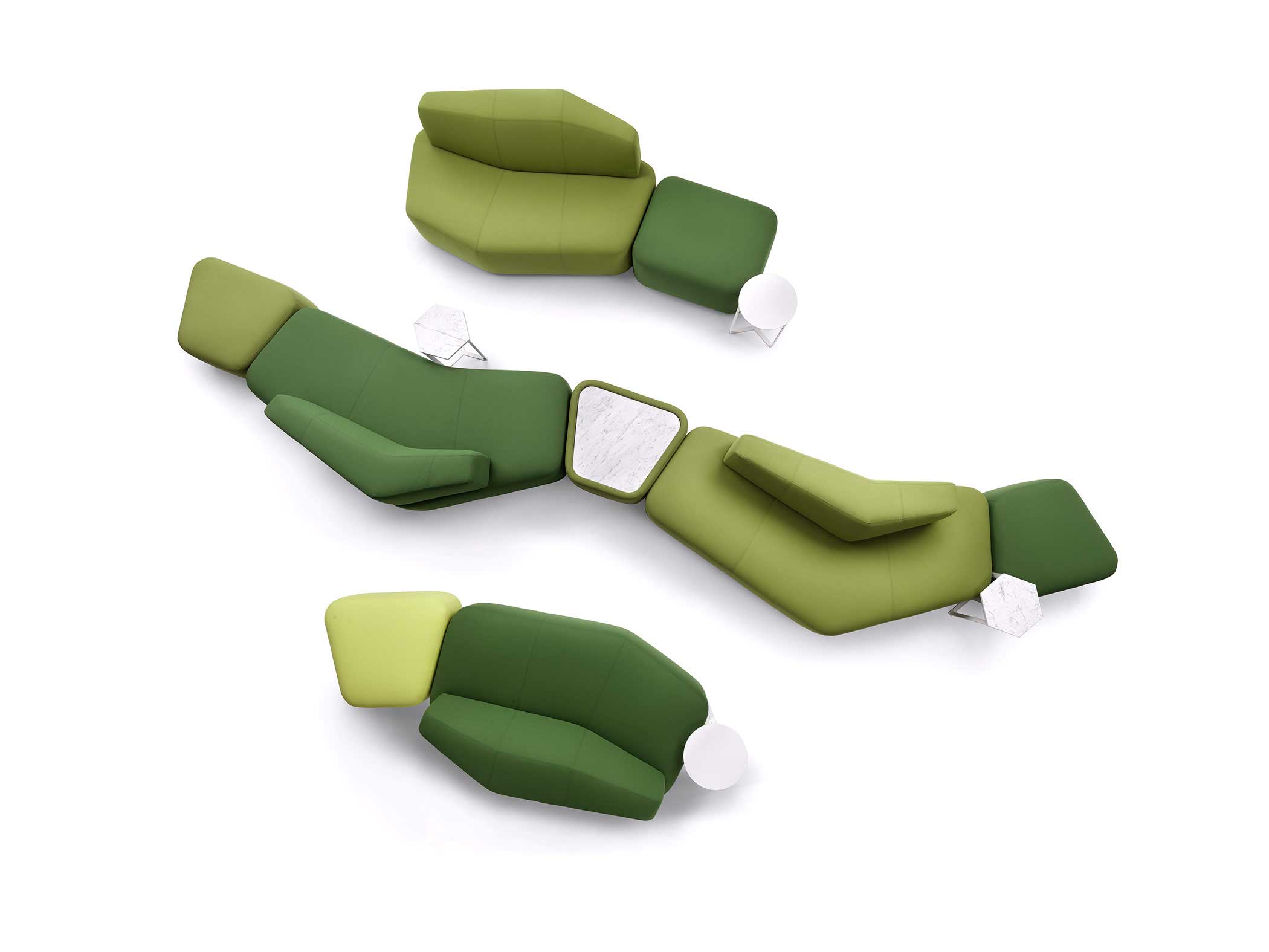 The Atacama freestanding sofa collection is distinguished by its complex organic shapes, which lend a distinctive character to contract and residential projects. This unique design makes it possible to create interesting and appealing environments that stand out from the rest.