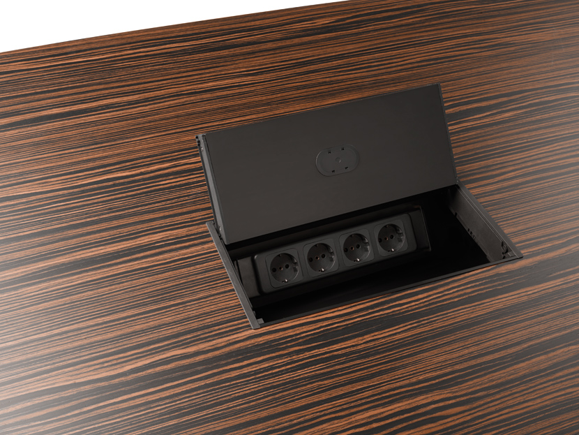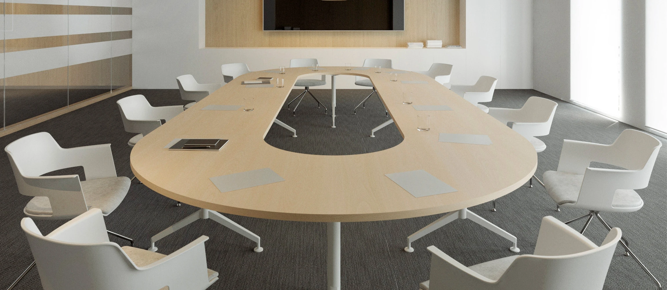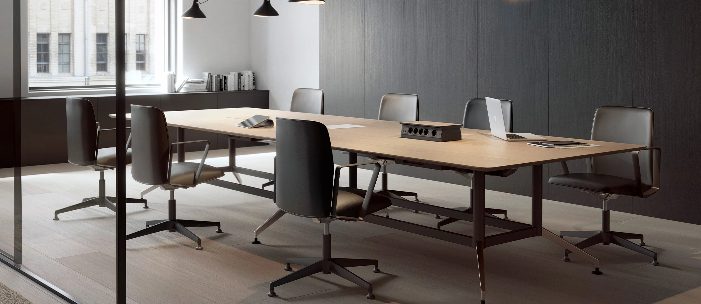 Drone is a family of meeting tables characterised by attractive design and high-quality materials. This series offers a wide range of configurations with different dimensions, electrification options, top shapes and extensions. A table designed to adapt to the most demanding formal meeting spaces.