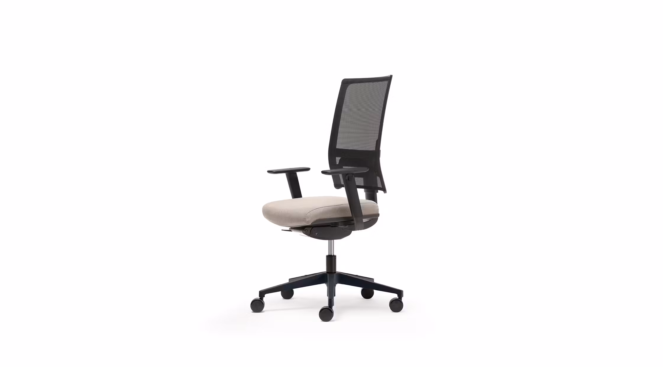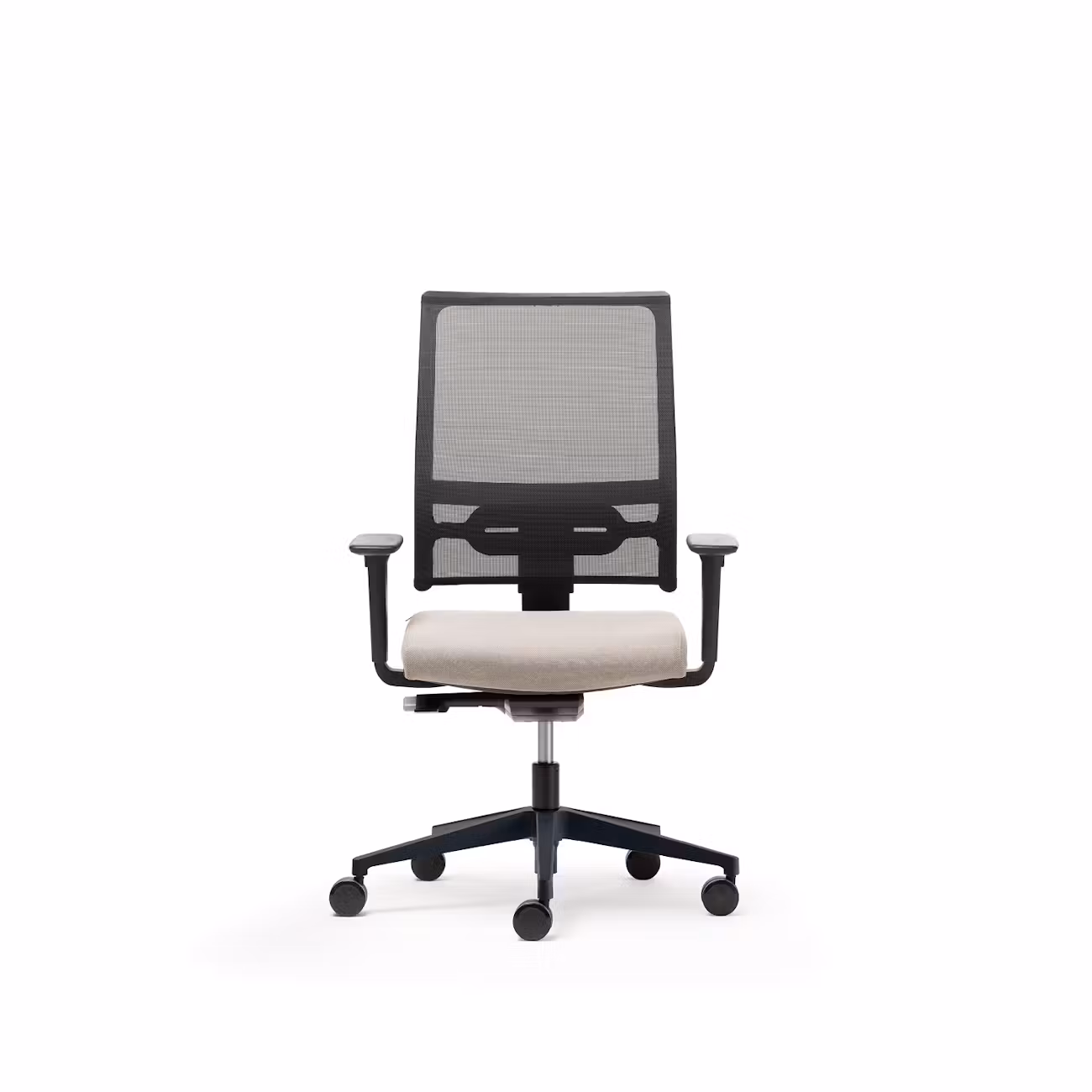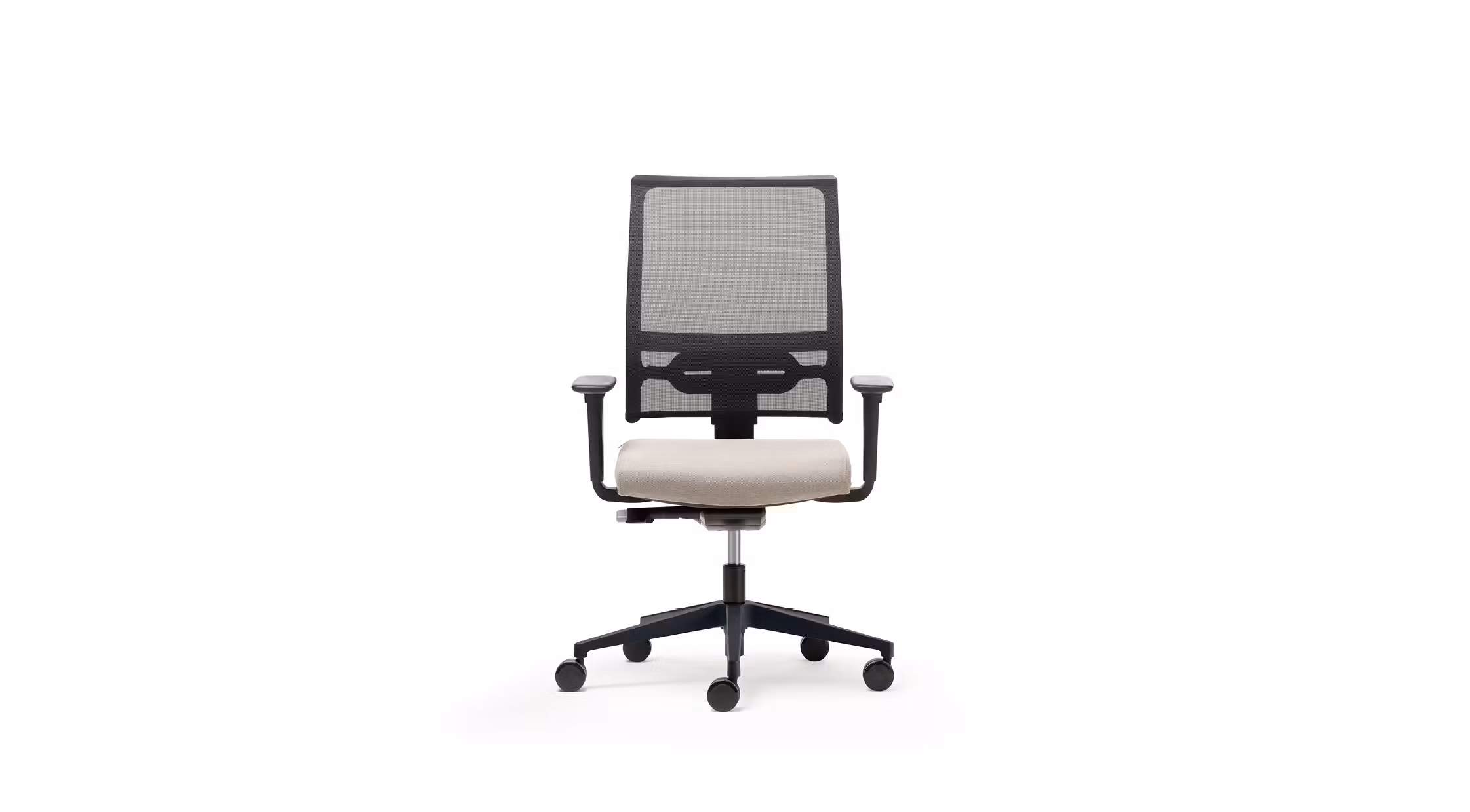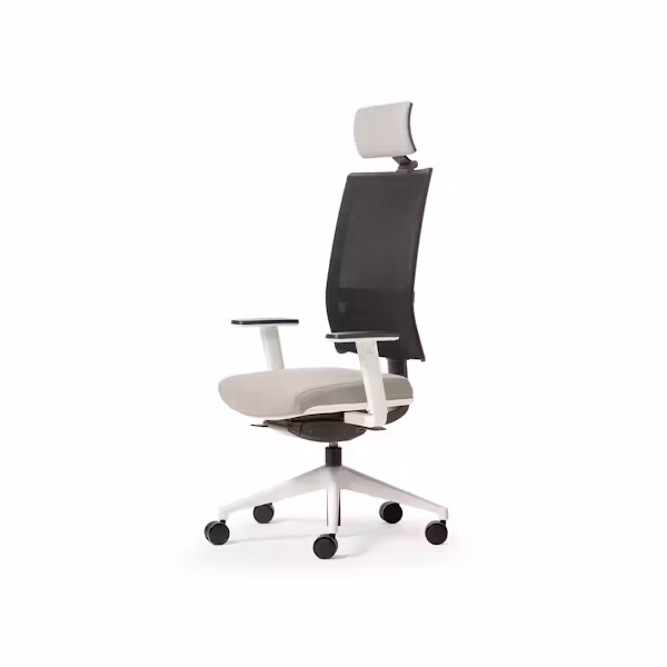 Operative armchair with wide dimensions and simple shapes. The mesh backrest is height adjustable and equipped with the up-down lumbar support and with the optional headrest the confort granted is elevated.