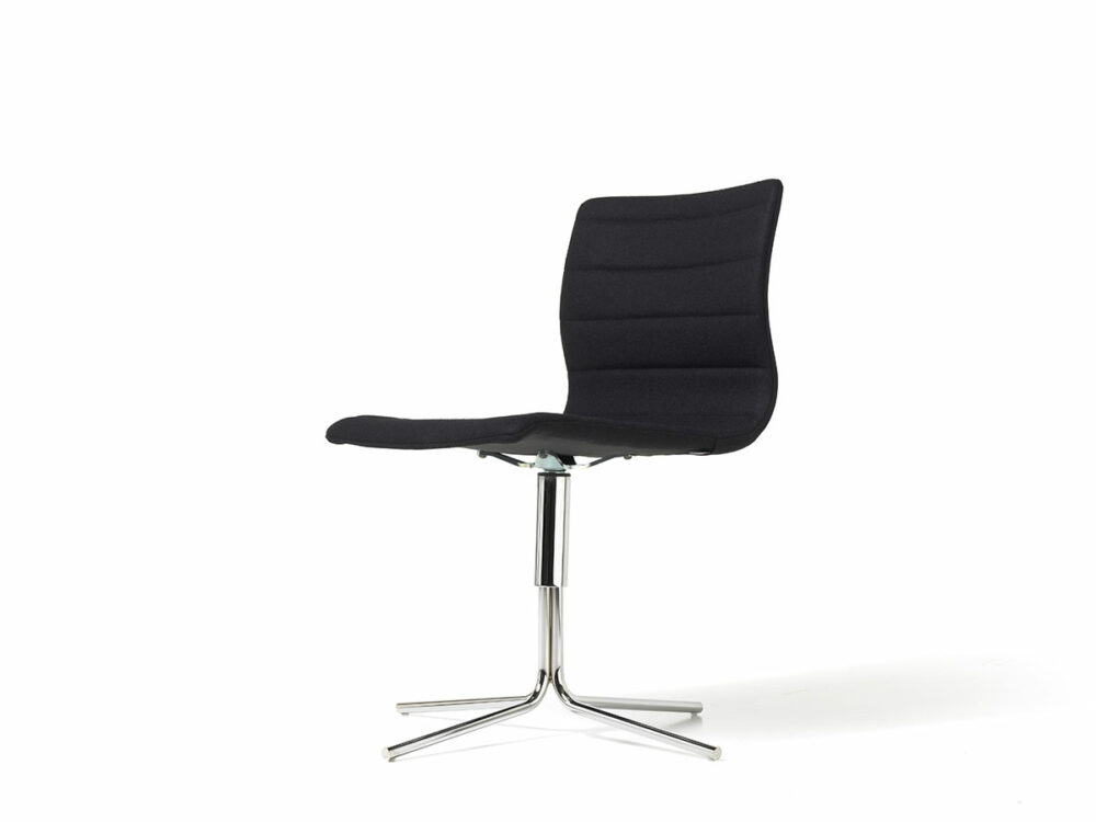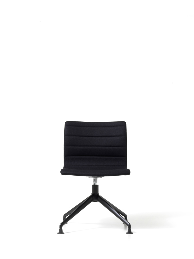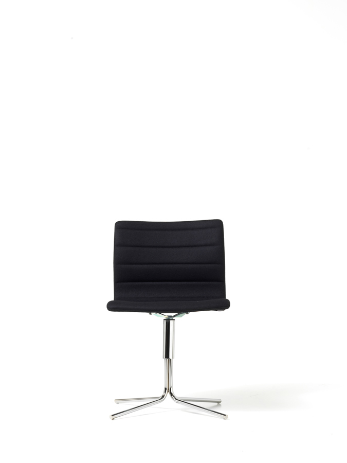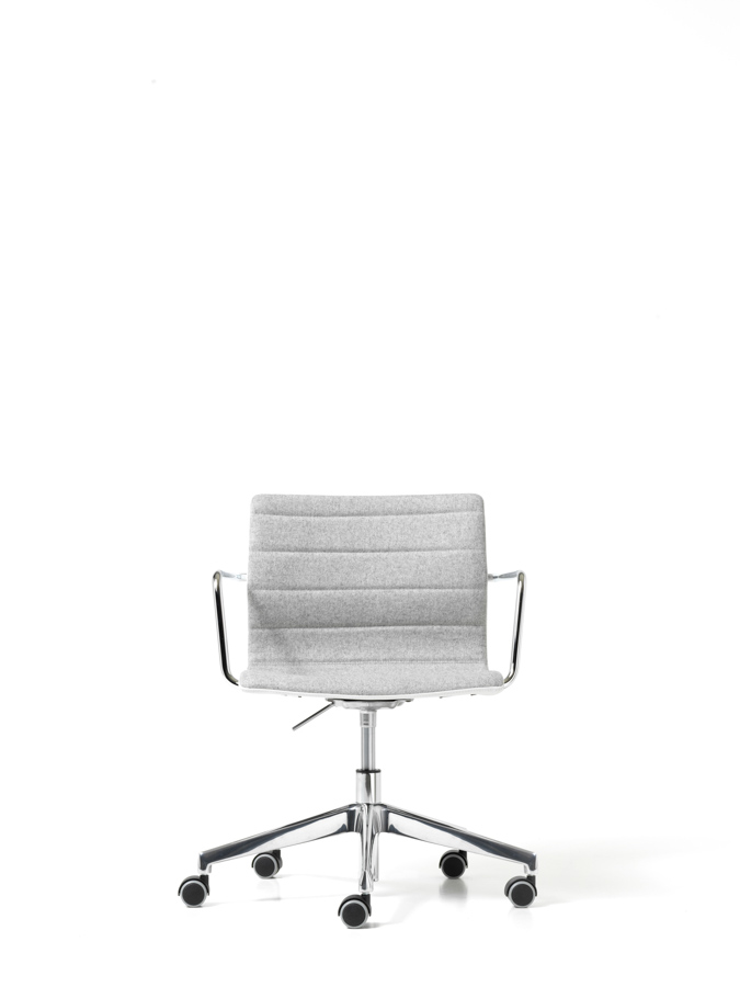 Modern and minimalist, it has a generous seat and a slinky backrest that supports the user’s posture and ensures comfort. Its armrests sweep decisively and finely around the backrest.
